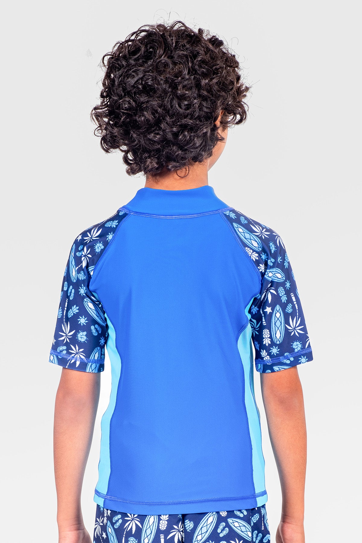 The Rash Guard was designed by our expert in house designers, who created this Rash Guard with short sleeves to provide versatility, as well as extra comfort and protection against the sun, for the kids who burn a little easier on their shoulders on the hotter days.