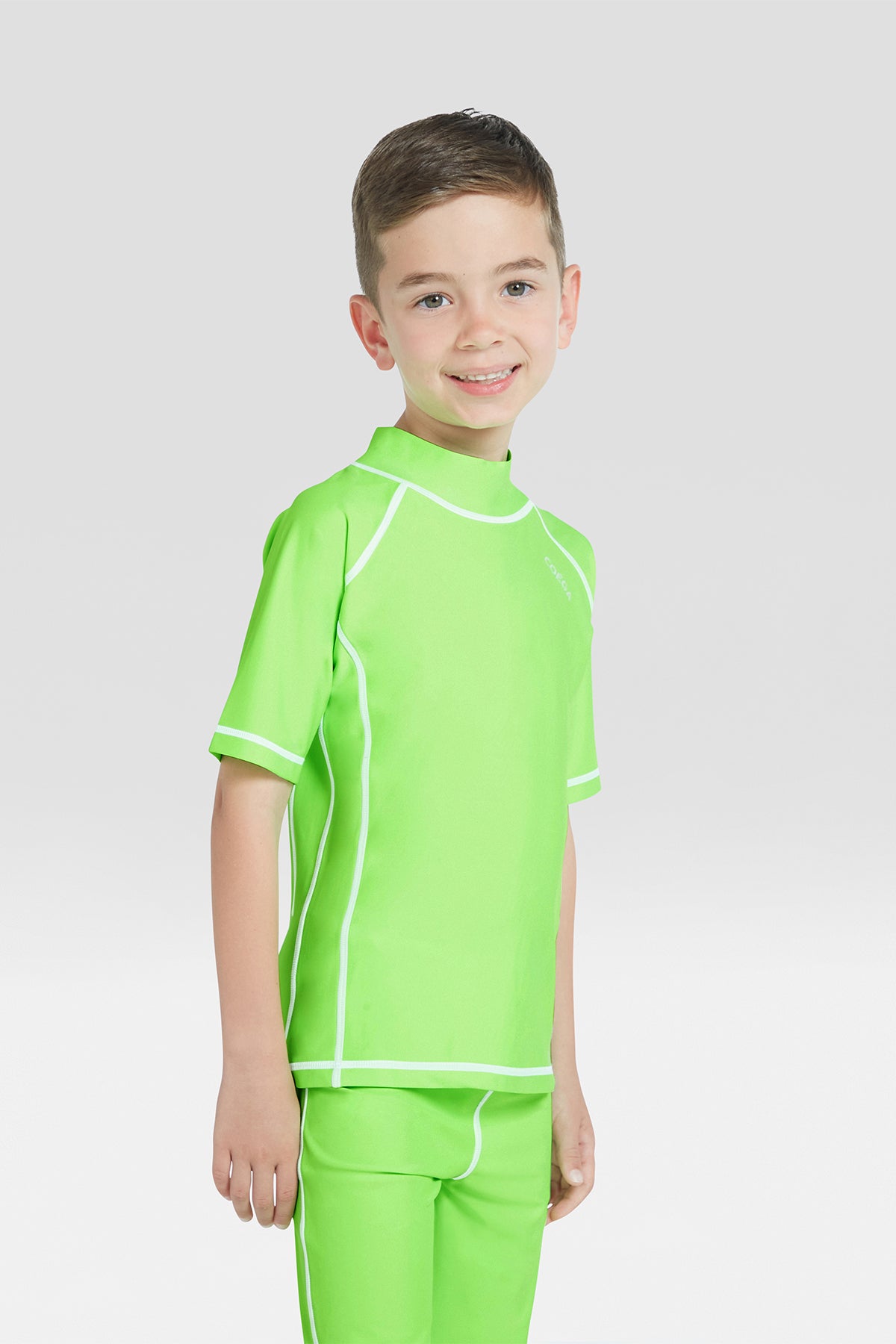 The Rash Guard was designed by our expert in house designers, who created this Rash Guard with short sleeves to provide versatility, as well as extra comfort and protection against the sun, for the kids who burn a little easier on their shoulders on the hotter days.