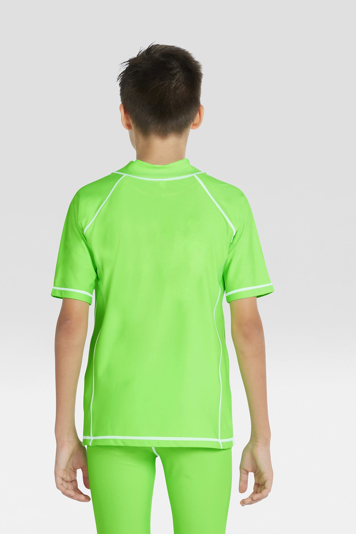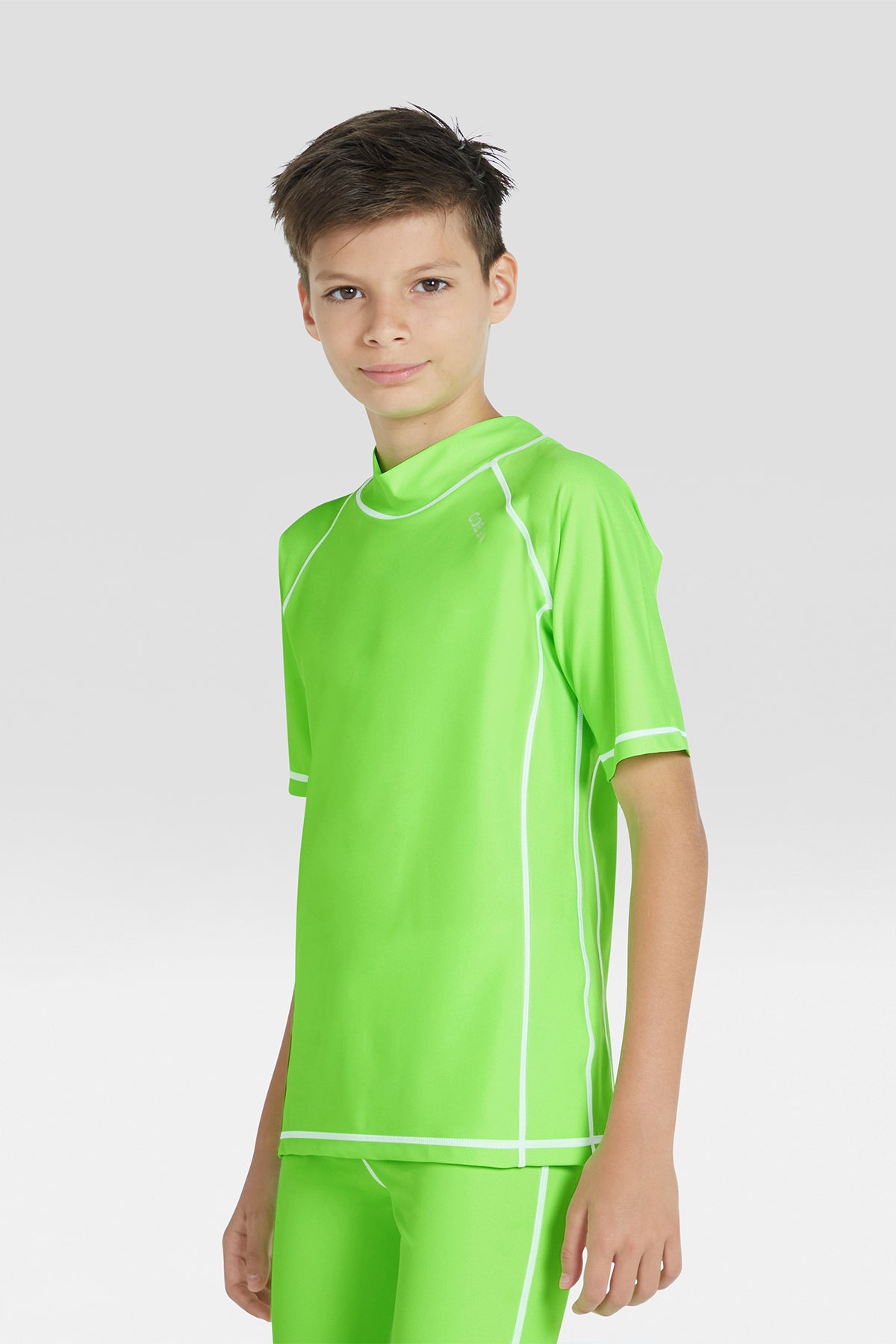 The Rash Guard was designed by our expert in house designers, who created this Rash Guard with short sleeves to provide versatility, as well as extra comfort and protection against the sun, for the kids who burn a little easier on their shoulders on the hotter days.