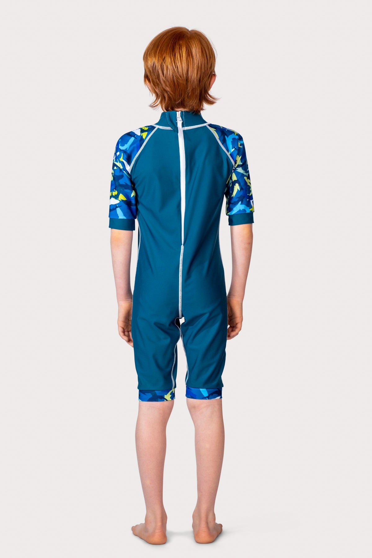 يوفر هذا التصميم المريح والفريد المكون من قطعة واحدة الراحة وحرية الحركة أثناء اللعب النشط في الماء. يحتفظ القماش المقاوم للكلور والماء المالح بشكله ويجف بسرعة مع توفير الحماية اللازمة من الأشعة فوق البنفسجية. انطلق، أحب الشمس!