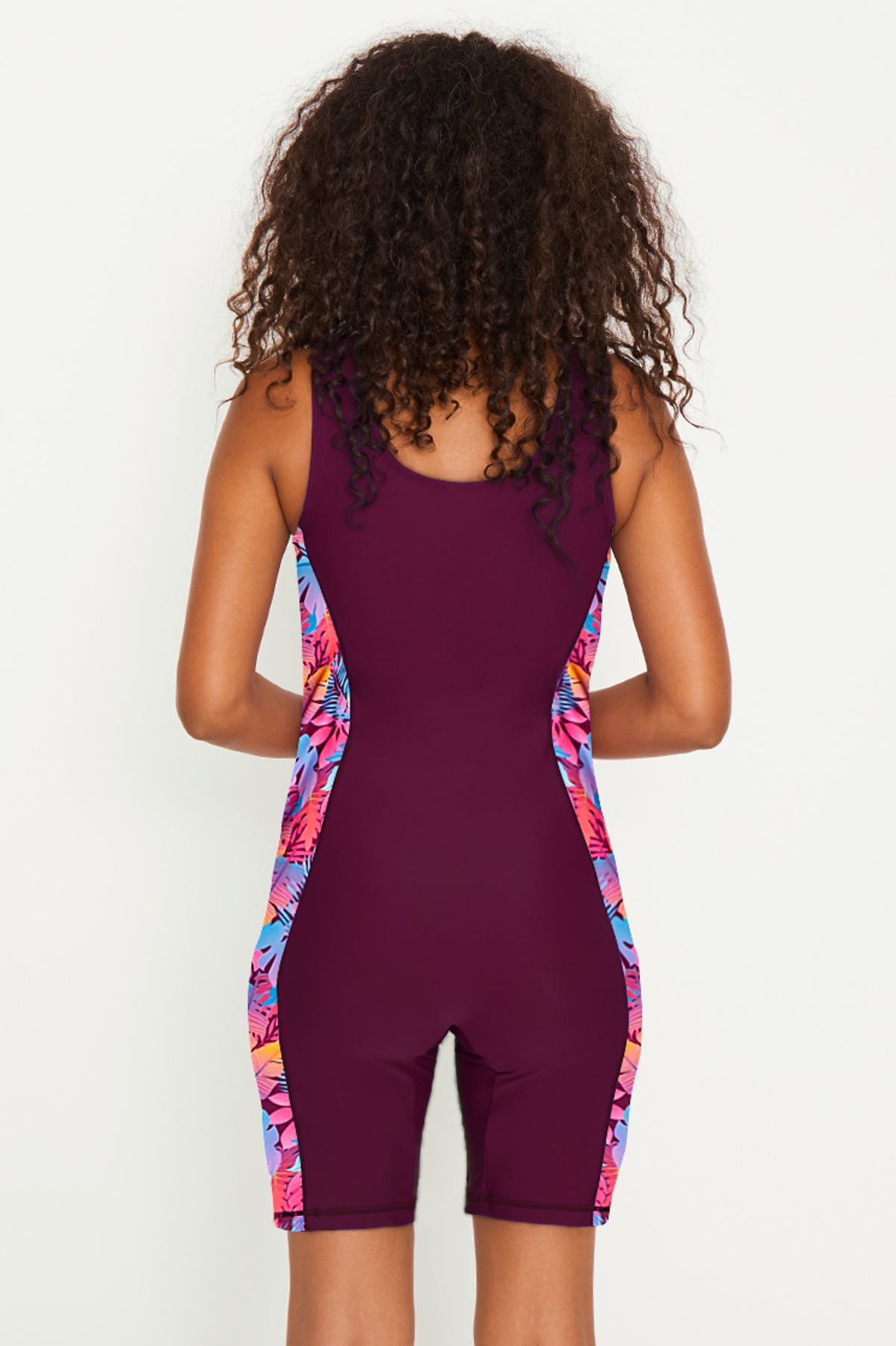 تتميز هذه البدلة المكونة من قطعة واحدة بأنها قابلة للتمدد وناعمة وخفيفة الوزن، وتوفر حماية من الشمس أثناء الاستمتاع بالرياضات المائية على الشاطئ أو حمام السباحة. تتميز الأشرطة العريضة على شكل قميص داخلي وساقان بطول منتصف الفخذ لتوفير الراحة.
