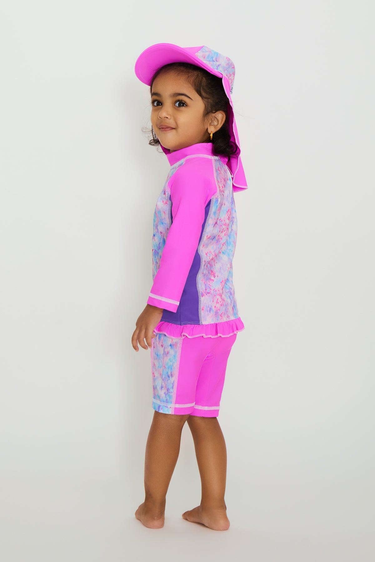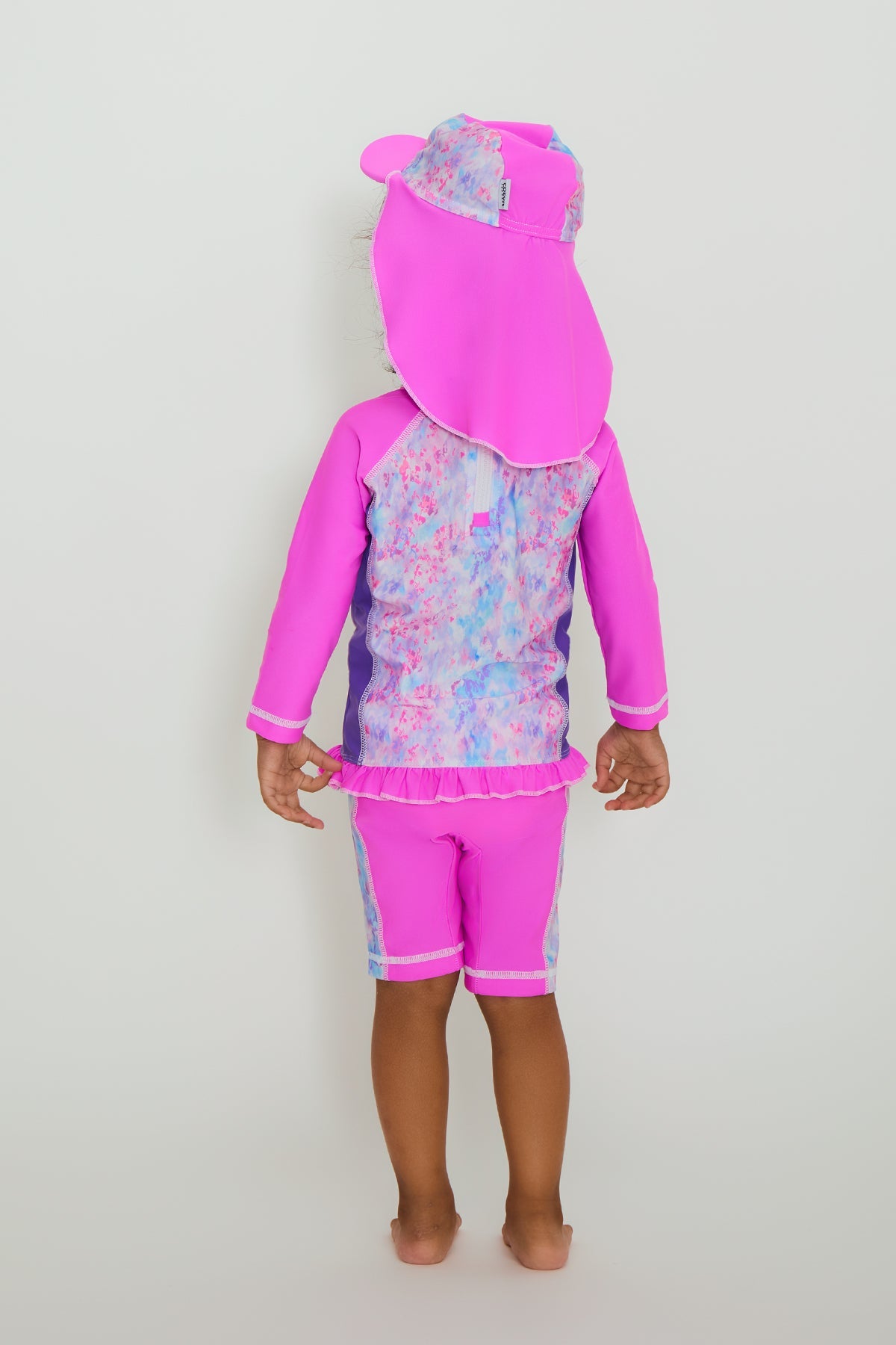 يوفر نسيجنا خفيف الوزن الراحة وحرية الحركة أثناء اللعب النشط في الماء. يحتفظ النسيج المقاوم للكلور والماء المالح بشكله ويجف بسرعة مع توفير الحماية اللازمة من الأشعة فوق البنفسجية، حتى يتمكن طفلك الصغير الباحث عن الشمس من الاستمتاع بأشعة الشمس!