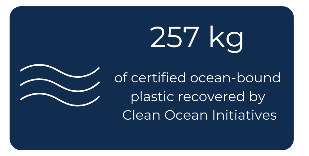 Plastic pollution in our waters cause a grave threat to our marine life and its ecosystems. We have recovered 257 kilograms of ocean bound plastic since August 2023.