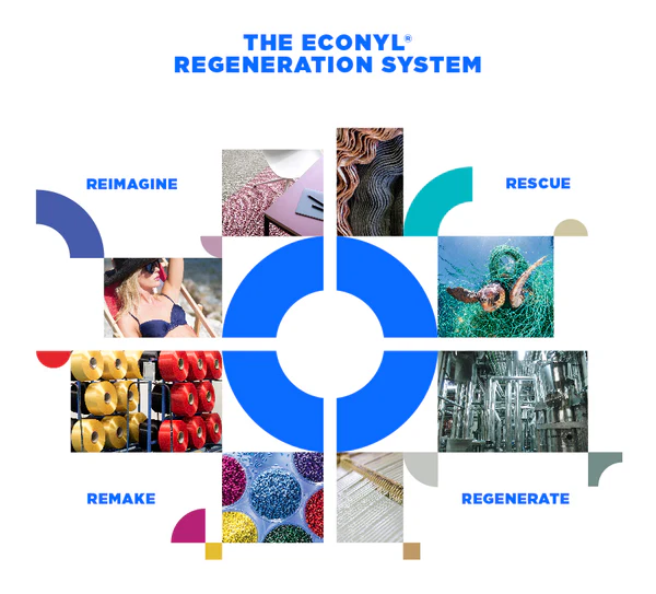 The regenerated nylon is exactly same as brand new nylon but with a sustainability edge, whereby waste is recycled, recreated and remoulded. Apart from recycling waste, it is also better when it comes to climate change and reduces the global warming impact of nylon by up to 90% compared with the material from oil.