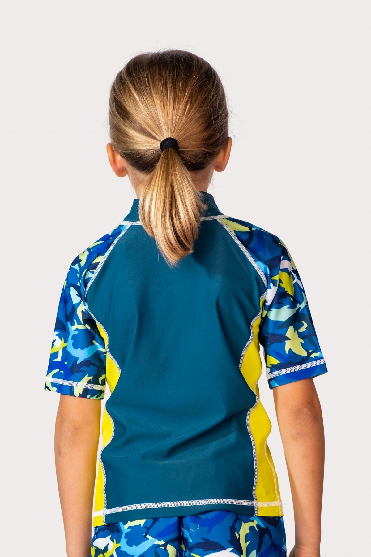 Stretchable and soft, this short sleeved rash guard will provide your child with protection from the sun while enjoying the beach or pool. Longer in length in the body provides extra comfort and coverage to keep them UV protected whether they're playing or learning to swim. Raglan style short sleeves extend to just above the elbow and minimize bulk under the arms. Go Ahead, Love the Sun!