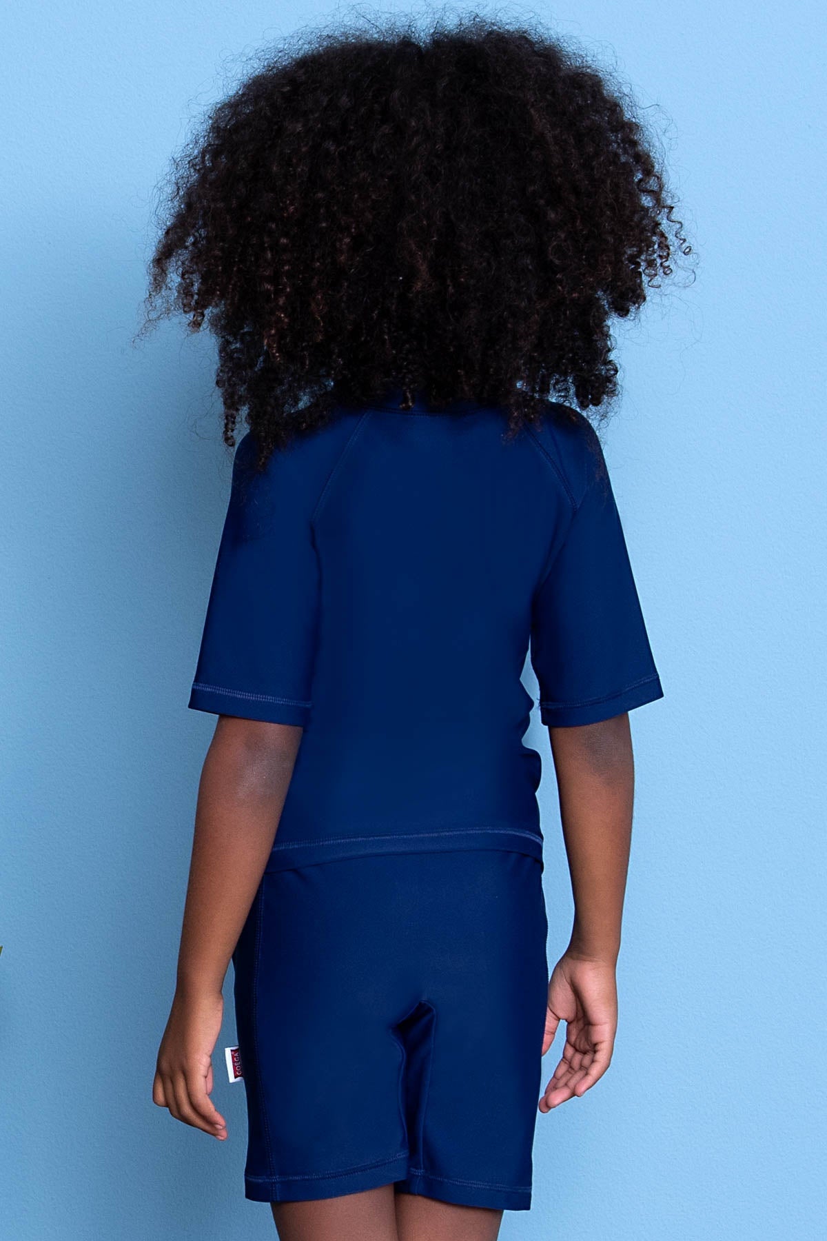 This convenient and unique two-piece design provides comfort and freedom of movement during active water play. The outfit includes a rash guard and coordinating mid-thigh swim shorts. The chlorine and saltwater resistant fabric retains its shape and dries quickly all while providing much needed UV protection. Slighter higher neckline and raglan sleeves just above the elbows to protect the high exposure areas. Go Ahead, Love the Sun!