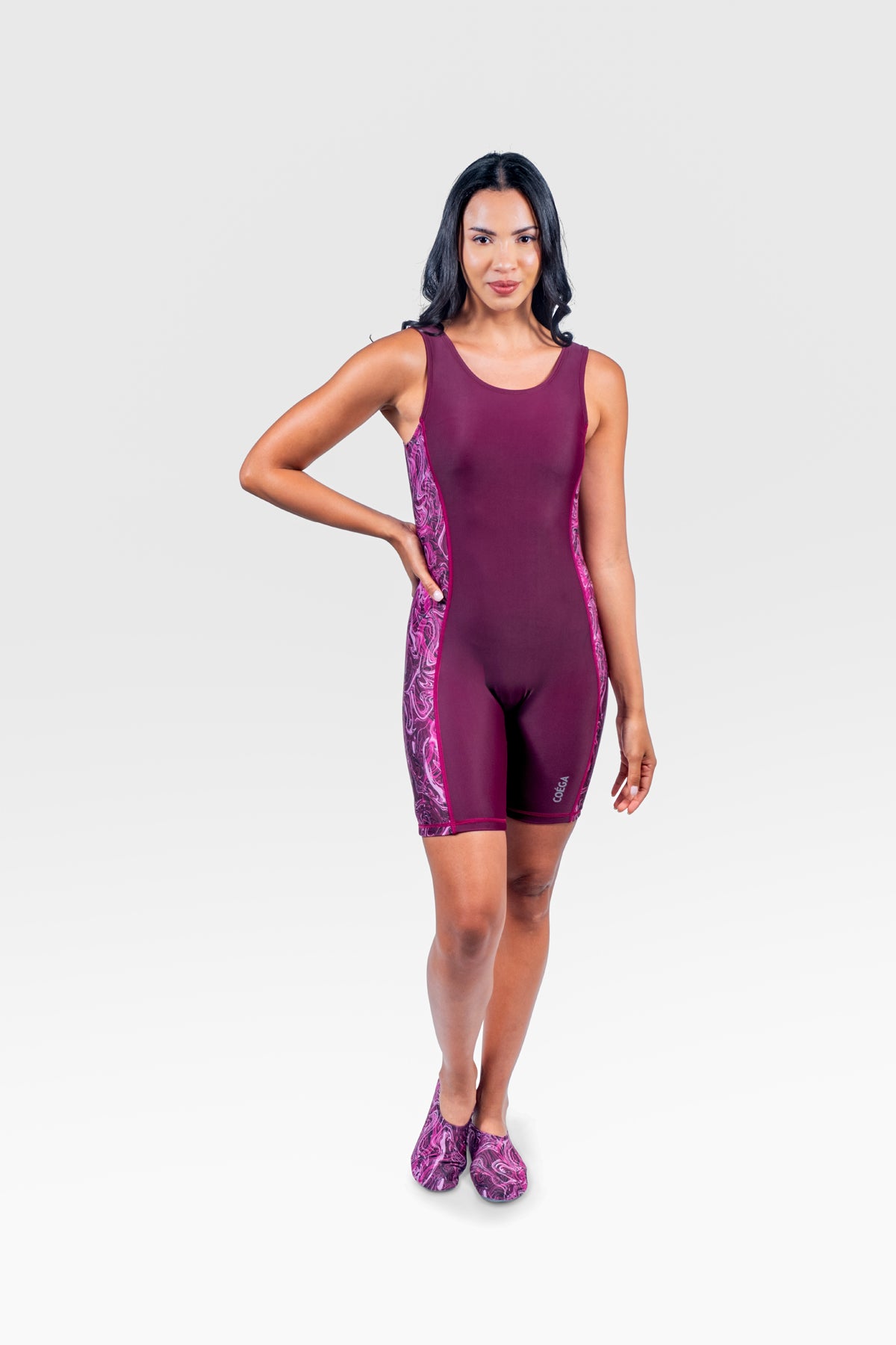This ladies Swim Shortie is a one piece that has single straps on the shoulders and goes down just above the knees. Our in-house designers have expertly designed the Swim Shortie to reduce the amount of drag produced in the water, enhancing your freedom of movement during your aquatic activities. The Swim Shortie has built-in UV protection, shielding you from harmful UV rays, ensuring you stay continuously protected during your aquatic activities.