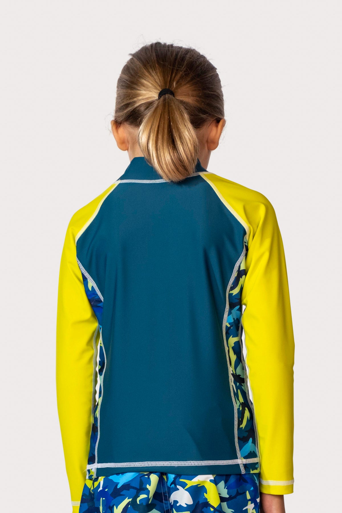 Stretchable and soft, this long sleeved rash guard will provide your youngster with protection from the sun while enjoying the beach or pool. Longer in length in the body provides extra comfort and coverage. Slighter higher neckline and raglan style long sleeves protect from the sun while minimizing bulk under the arms. Go Ahead, Love the Sun!