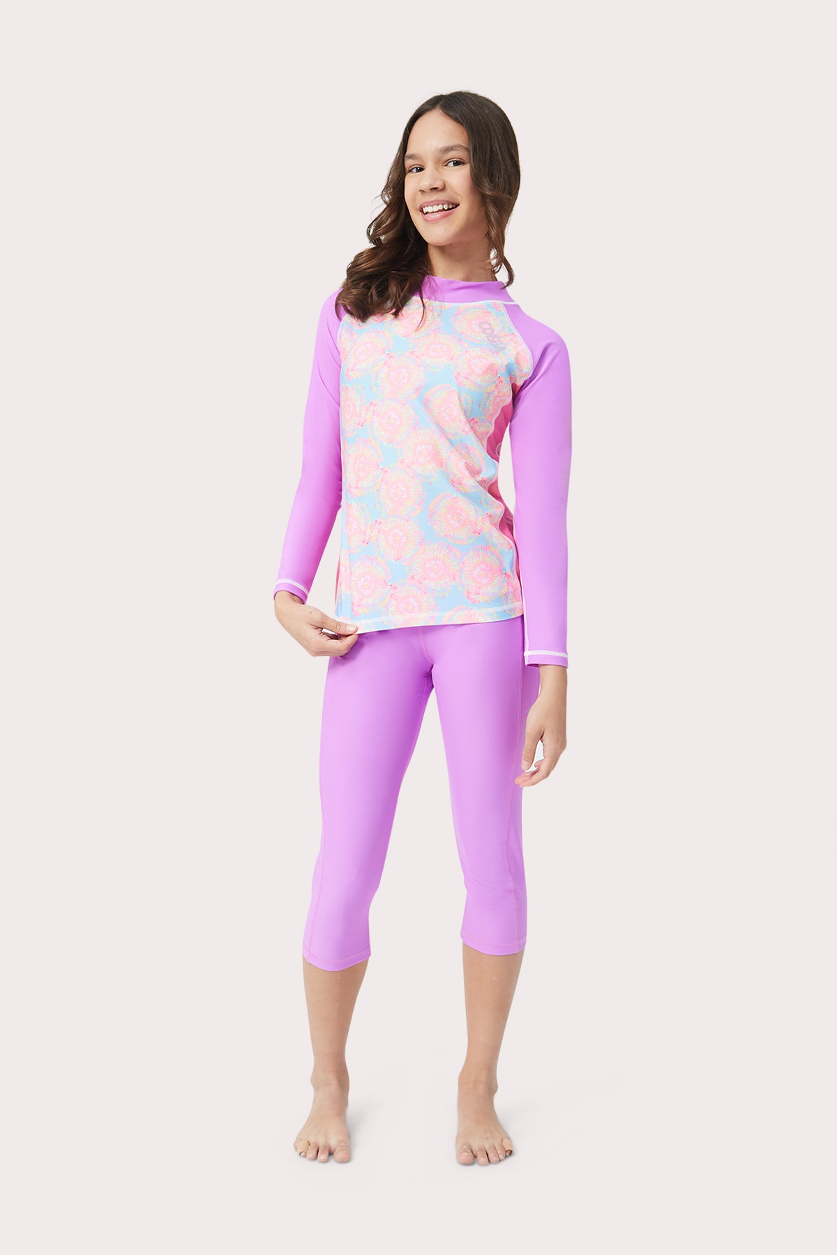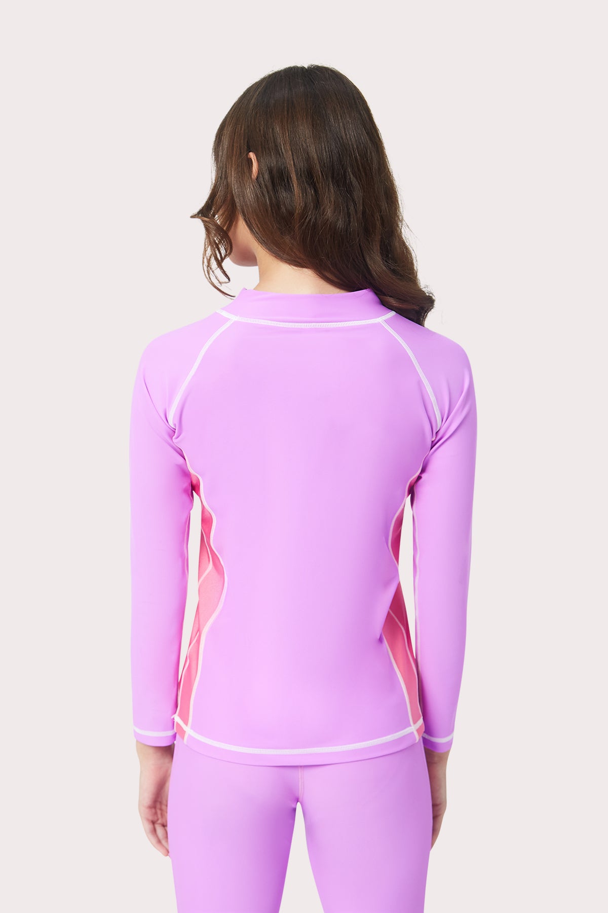 The Rash Guard was designed by our expert in-house designers, who wanted to create a 3 in 1 Rash Guard, one that provided versatility, extra comfort and protection against the sun. Especially designed for the kids who burn a little easier on the hotter days. For enhanced movement, the Rash Guard is designed to have a higher neckline with raglan long sleeves to minimize bulk of fabric under the arms.