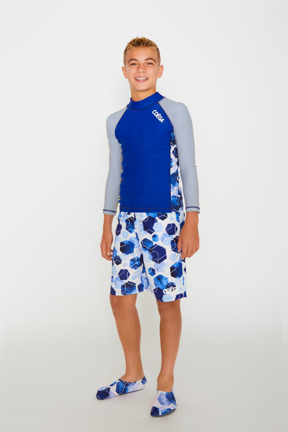Soft and lightweight, these boys board shorts will provide protection from the sun while enjoying water sports at the beach or pool. Lace up front for easy adjusting and elasticated waist around the back allows for a more exact fit. Includes a mesh inner lining for comfort. And the price is just what Mum and Dad are looking for.