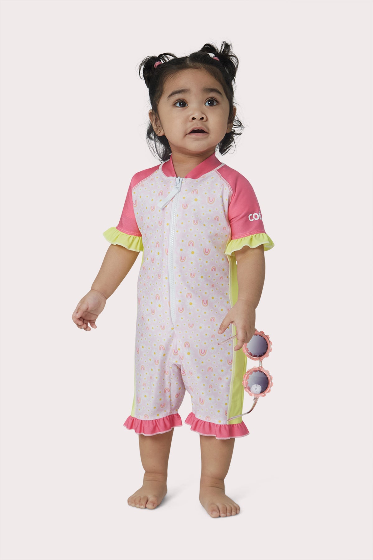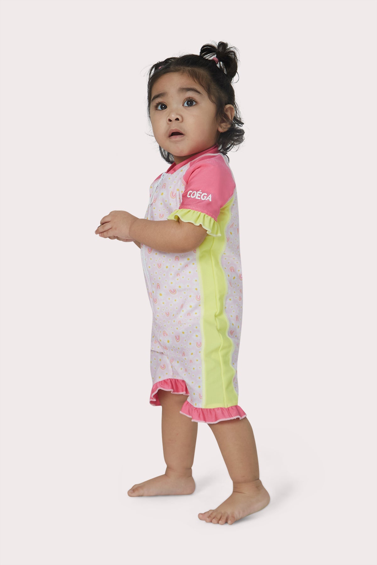 Your Daughters Swimwear of choice. The popular COÉGA baby girls One Piece Suit is designed with ¾ length zip for quick and easy access for your active little one. The featherlike lightweight and breathable fabric also provides comfort and freedom of movement during active water play to ensure maximum comfortability for your little one. The fabric being comprised of UV protective material as well as being chlorine and saltwater resistant fuses comfortability and protection all in one whilst ensuring the longevity of your child favorite swimwear. Our lightweight and breathable fabric also provides comfort and freedom of movement during active water play.