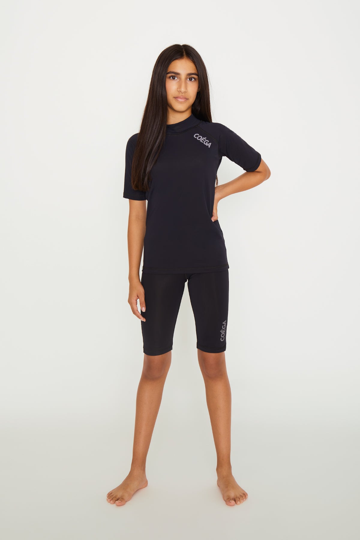 Stretchable and soft, these knee length swim shorts will protect and cover your girl while enjoying water sports, at the beach or pool. The shorts come with a elasticated wide waistband which is not only flattering but also very comfortable to move in. Can be paired with any matching COEGA top for a variety of stylish looks and coverage possibilities. Go Ahead, Love the Sun!