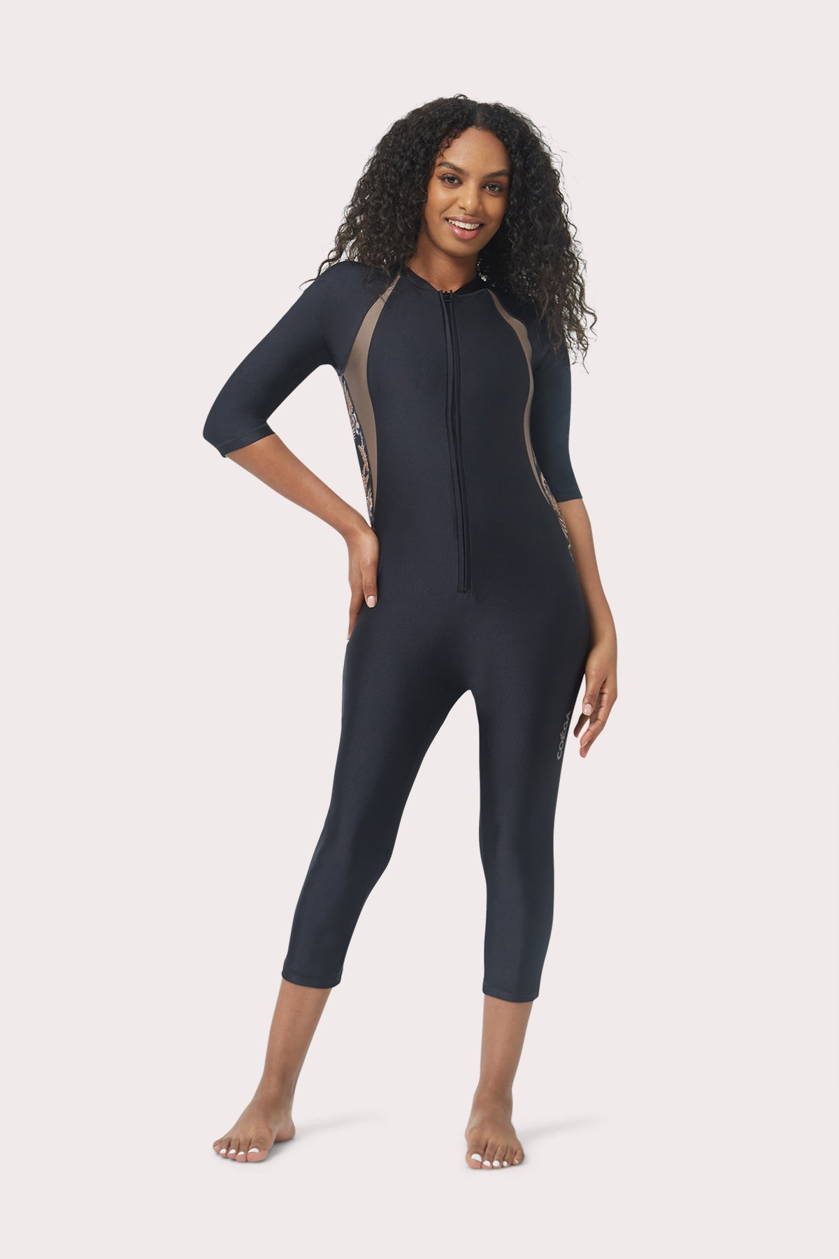 The Slim-Kini is designed to be customisable and adhere to all your needs, by having a built-in bra support and removable padding to give you the flexibility to decide how you want to wear your Slim-Kini. This Slim-Kini comes in our best-selling ¾ length with a sturdy front zip for easy manoeuvring in and out of the suit.