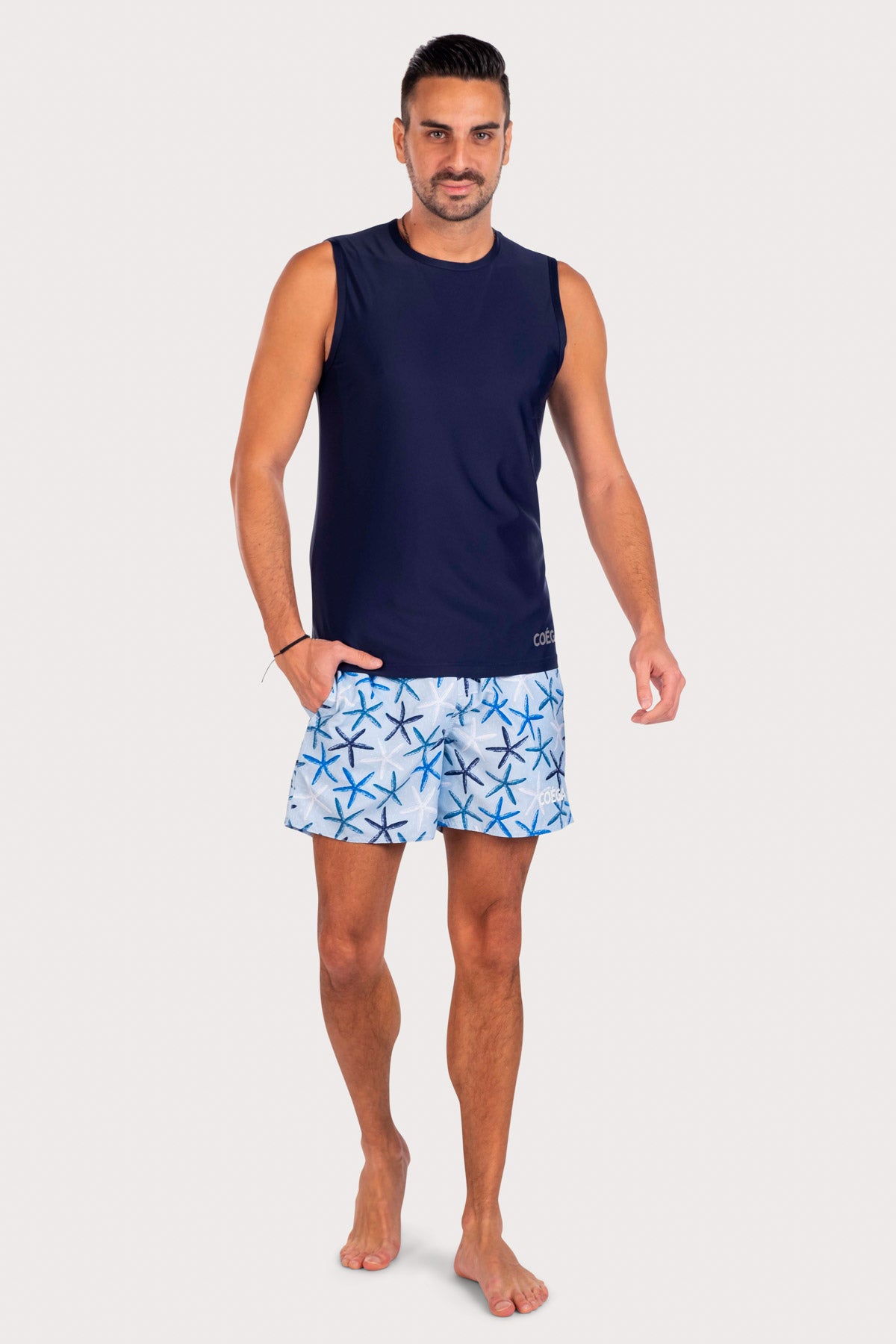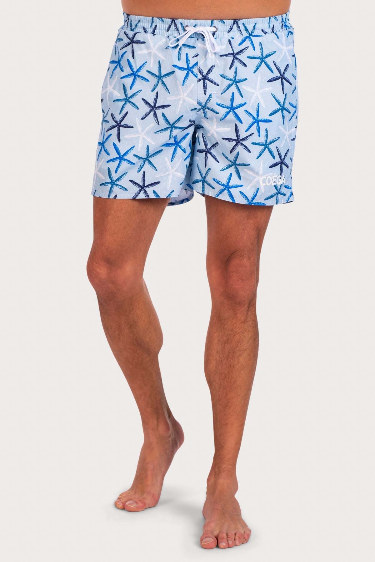 Soft and lightweight, COEGA board shorts for men are mid-thigh in length with a relaxed fit making them perfect for any activity on the beach or pool. Lace up front for easy adjusting and fully elasticated waist allows for more flexible fitting. Includes a mesh lining for comfort and side pockets.
