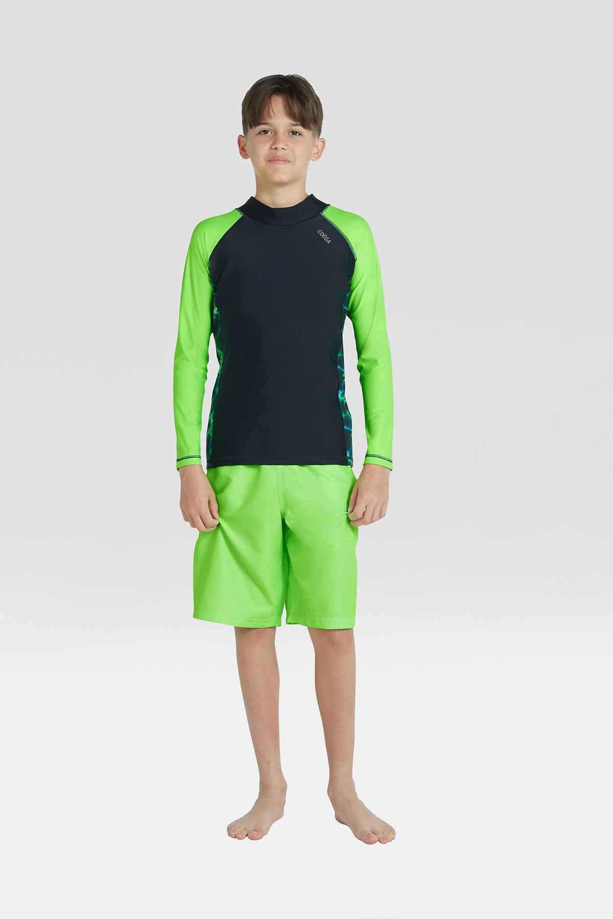 The Board Shorts have lace up front with an elasticated waistband that allows for easy adjusting of size with an easy pull of the laces, allowing for a relaxed and comfortable fit for your child. The inside of the Board Shorts includes full mesh lining for comfort and to prevent chaffing. Rest assured the garment being both chlorine and saltwater resistant ensures the longevity of the board short, allowing your little one to wear it as many times without the quality being compromised.