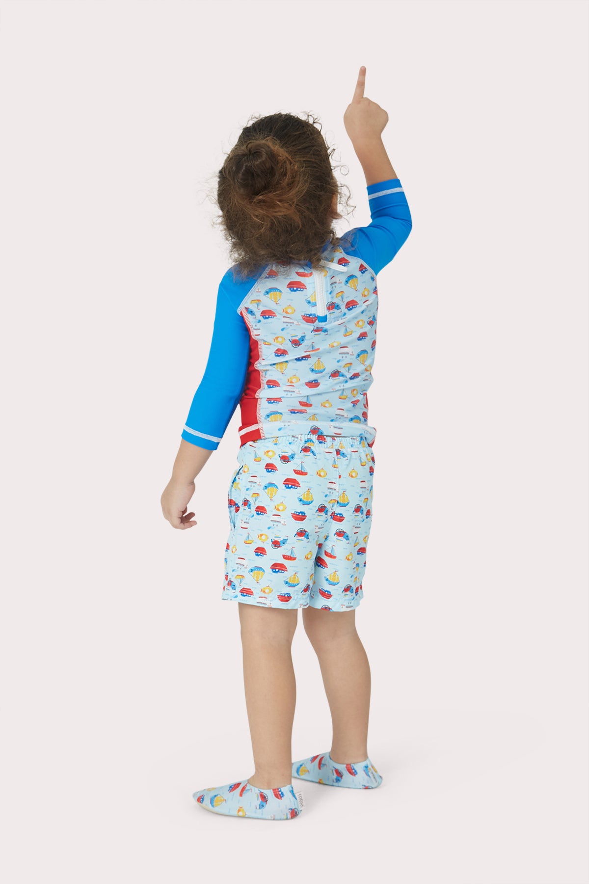 your Son€™s Favourite Board Shorts from COÉGA in our Blue Boats Color.