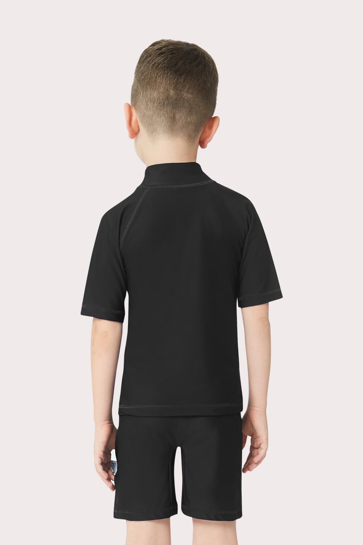 This convenient and unique two-piece design provides comfort and freedom of movement during active water play. The outfit includes a rash guard and coordinating mid-thigh swim shorts. The chlorine and saltwater resistant fabric retains its shape and dries quickly all while providing much needed UV protection. Slighter higher neckline and raglan sleeves just above the elbows to protect the high exposure areas. Go Ahead, Love the Sun!
